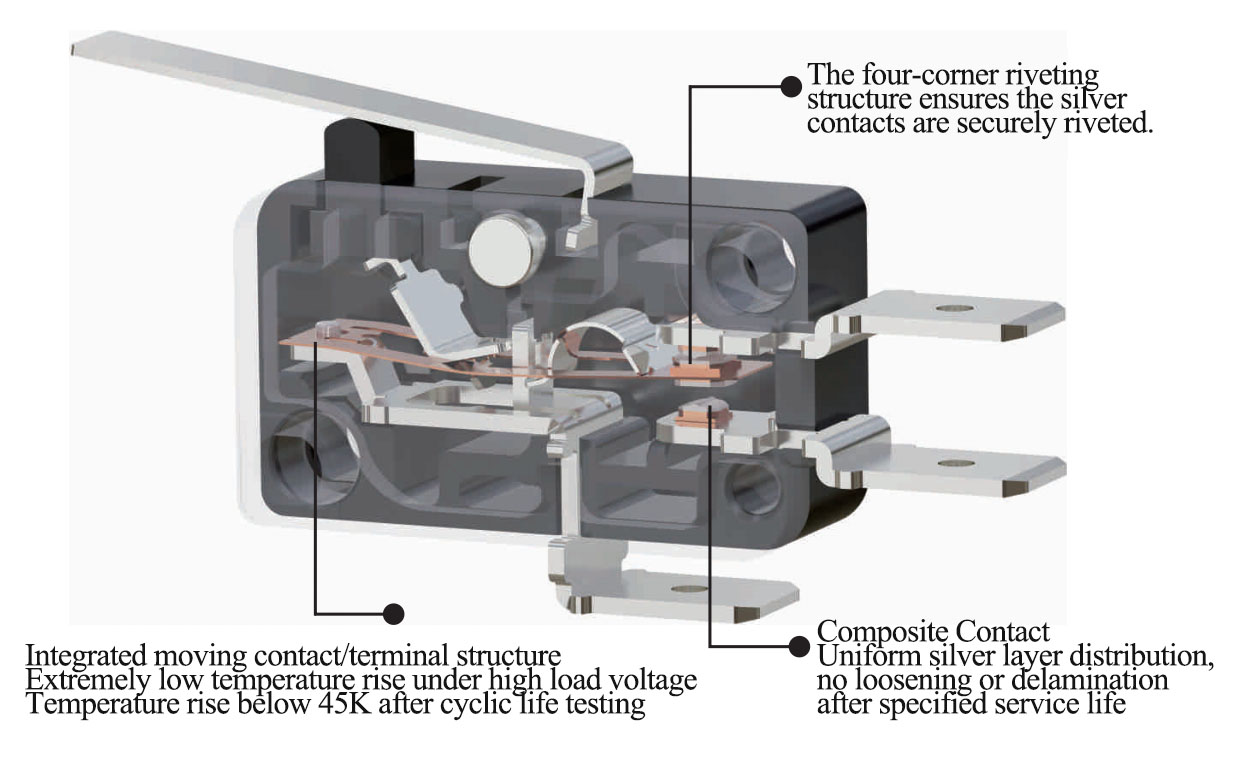 1.Base   2.Outer casing   3.Button   4.Movable plate   5.Clips   6.Support rod   7.COM   8.N.O   9.N.C   10.Moving contact